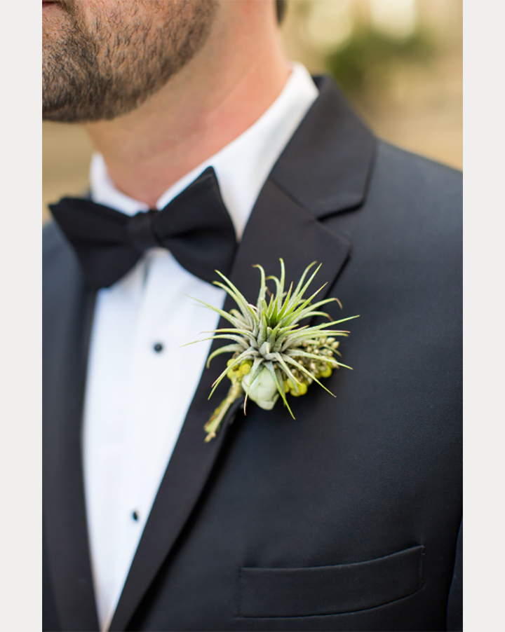 We call them boutonnières, while others refer to them as buttonholes. Boutonnière is actually the French word for "buttonhole" and back in the day, the boutonnière was worn on the left lapel of a suit jacket and placed through the buttonhole. Alas, we are not here to give you a history lesson, so we'll just say that though they are small, they are mighty. They can match the bride's bouquet or not. They can go with the color palette of your wedding or be a statement piece. We found the prettiest bouts we could find. Some wrapped with twine, others with velvet. A variety of flowers and colors and one with a pepper and raspberries. Take a look and be inspired! Lead photograph ~ Kaleb Norman James Design; Ryan Flynn Photography