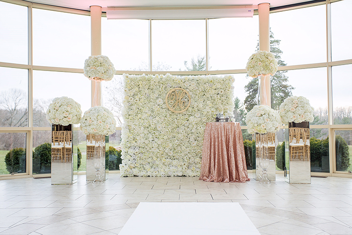 Pick your jaw up off the floor! We know... bride Monica looks incredible in our Sophia Tolli "Amalfi" gown! She is positively regal in this strapless tulle and organza trumpet dress with metallic lace. Gorgeous bride and beautiful photography by Lola Snaps Photography. Be sure to scroll down to check out the groom's fabulous tux and the amazing flower wall by D Nicole Settings. Even more amazing, because they use artificial flowers which look real from the photographs. The walls are quite affordable starting at $375 to $565 including rental, delivery, setup and pick up. Who says you can't afford a flower wall now?!